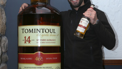 The 105.3-litre bottle of 14-year-old Tomintoul is nearly 1.5m (4.9ft) tall, weighs more than 180kg (396lbs) and would serve up about 5,250 drams.